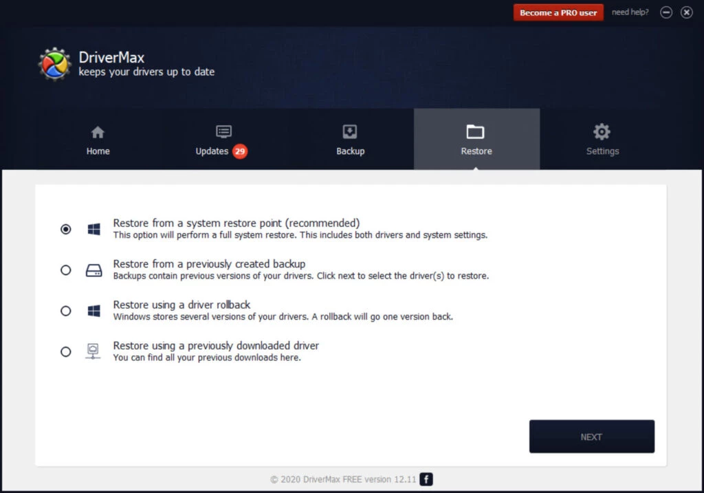 Dies ist ein weiteres wichtiges Feature, da es bei einer Neuinstallation oder einem Upgrade Ihres Systems hilfreich ist. Der Wiederherstellungspunkt ist standardmäßig aktiviert und stellt alle Treiber innerhalb von 5–10 Minuten wieder her. Zusätzlich bietet er ein Treiber-Backup-Archiv, mit dem Benutzer jeden Treiber wiederherstellen können. So ist sichergestellt, dass alle benötigten Treiber auf dem System verfügbar sind, ohne dass Sie einzeln danach suchen müssen. Automatische Updates ermöglichen es Benutzern außerdem, schnell die neuesten Treiber zu erhalten, ohne den manuellen Aktualisierungsprozess durchführen zu müssen. Darüber hinaus können Sie Ihre benötigten Dateien in eine komprimierte ZIP-Datei kopieren, diese einfach exportieren und die Treiberwiederherstellungsoption verwenden.
